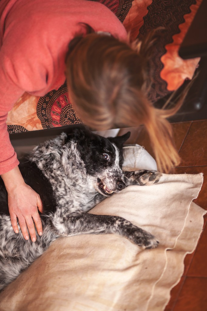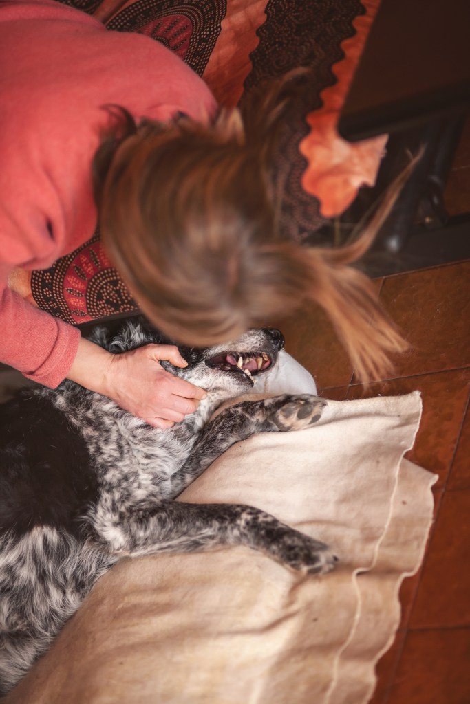 Non si muove molto dal suo cuscino, gli anni e i dolori alle zampette si fanno sentire, ma ha imparato a ottimizzare gli sforzi: da un po’ di mesi, quando si alza per andare a bere, prima zompetta fino alla ciotola, poi torna e fa il “giro-grattini”: viene da me, mi guarda e aspetta. Io ormai, anche se magari in quel momento ho le cuffie o sono al telefono con un cliente, allungo le mani in automatico. Dopo aver ricevuto i grattini, Zico torna soddisfatto al suo cuscino. E sì, i grattini gli piacciono sempre, anche se non glieli faccio più da in piedi perché si affatica.