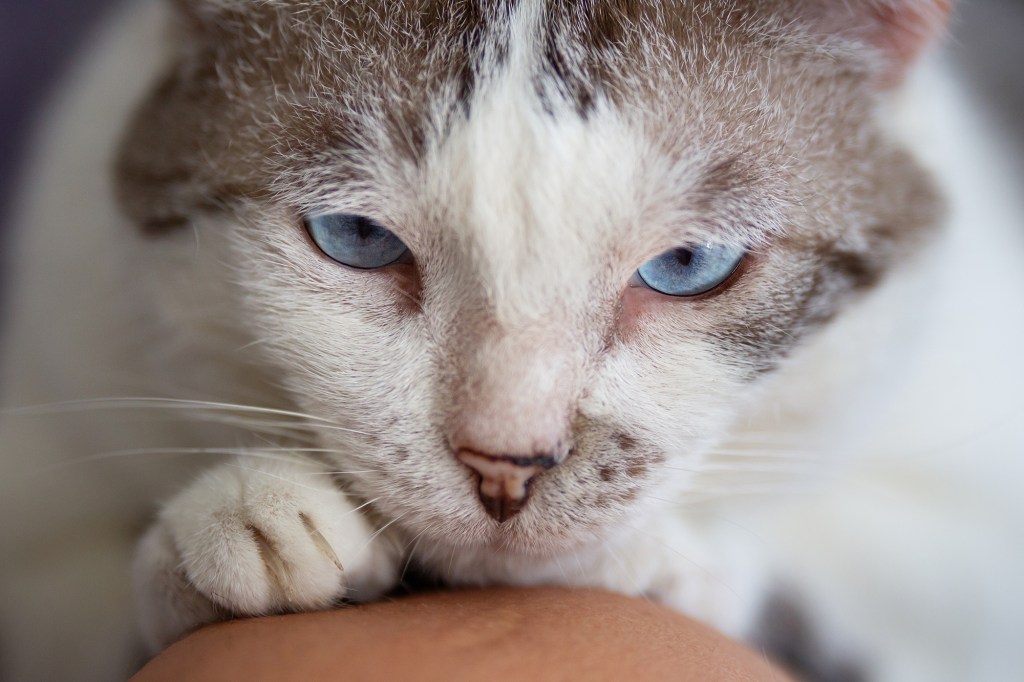 Anzi, di più: io lo definisco il gatto perfetto perché, oltre al suo carattere d’oro, mangia qualunque tipo di cibo (l’importante è che ce ne sia in abbondanza) e non ho mai visto un gatto così santo al momento di prendere le medicine. Quando è arrivato aveva un orecchio tagliato e tanti problemi intestinali e, per il primo mese, ho dovuto curarlo: lui si è fatto fare di tutto, si faceva mettere la crema, prendeva le pastiglie senza lamentarsi… anche adesso che ha avuto problemi urinari e deve prendere un integratore tutte le sere, se lo mangia direttamente dal cucchiaino.